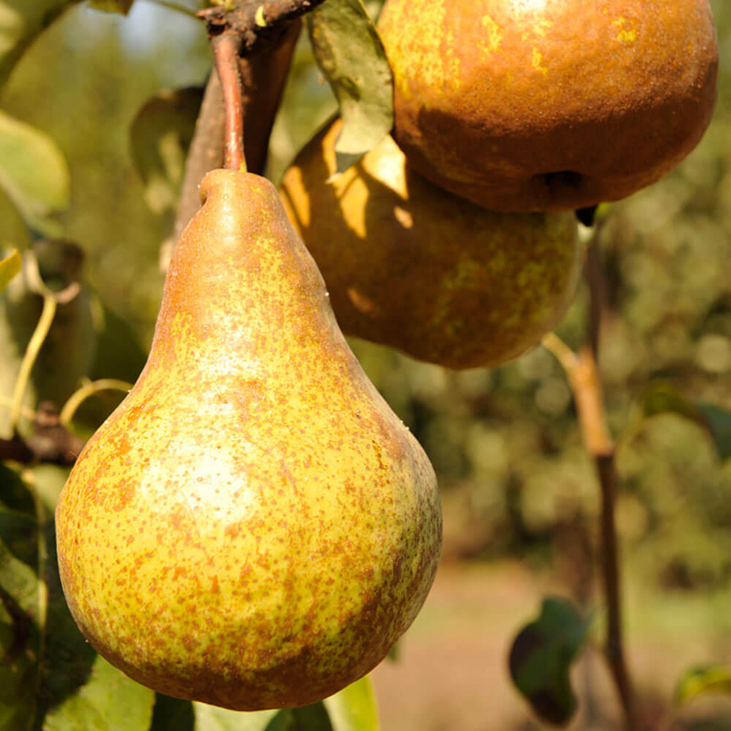 Груша Бере Боск – самый популярный сорт, народное название Бера. Отличается очень крупными плодами с высокими товарными и вкусовыми характеристиками. Дерево среднерослое растет до 3.5 м в высоту, компактная крона, пирамидальной формы. Лист мелкий, глянцевый. В плодоношение вступает третий год после посадки. Плоды крупные, массой 150-220 г, удлиненно грушевидной формой. Кожа тонкая, желтовато-коричневой окраски. Мякоть белая или с кремовым оттенком, маслянистой консистенции, нежная, тающая, очень сочная и сладкая, душистая, с миндальным привкусом. Созревают плоды 5-15 сентября, к употреблению пригодны сразу. Лежкость средняя 20-30 дней. Плоды транспортабельны, завязываются парами и тройками, но крепко удерживаются на дереве и даже при созревании не осыпаются, созревают не одновременно. В состав почвы дерево малотребовательно, хорошо растет и плодоносит при достаточном орошении на легких по механическому составу грунтов. Зимостойкость выше средней. Сорт устойчив к основным заболеваниям, слабо поражается паршей.