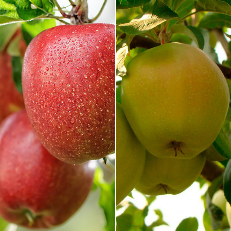 Яблоня дерево сад (Кальвиль снежный + Бребурн) - два сорта яблонь привитые на одном подвое. Саженцы с несколькими сортами на одном стволе удобные для садоводов. Многосортовые саженцы образуются в результате нескольких привоев.