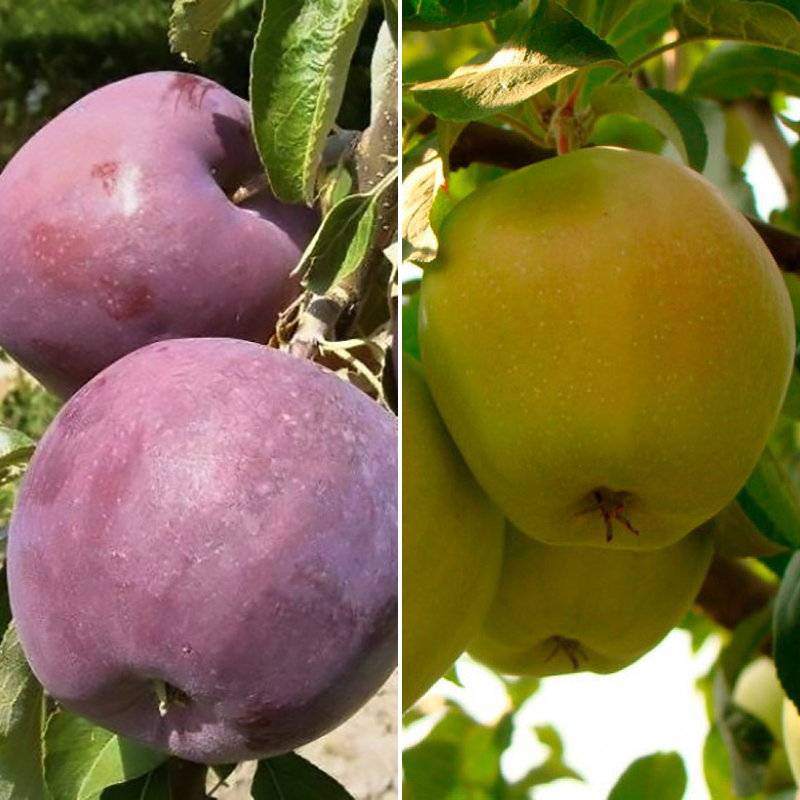 Яблоня дерево сад (Кальвиль снежный + Уильямс прайд) - два сорта яблонь привитые на одном подвое. Саженцы с несколькими сортами на одном стволе удобные для садоводов. Многосортовые саженцы образуются в результате нескольких привоев.