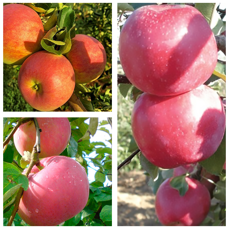 Яблоня дерево сад (Пирос, Эрли Женева, Фуджи) - три сорта яблонь привиты на одном подвое. Саженцы с несколькими сортами на одном стволе удобные для садоводов. Многосортовые саженцы образуются в результате нескольких привоев.