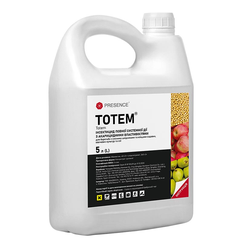 Тотем – это инсектицид полного системного действия с акарицидными свойствами для борьбы с сосущими вредителями и клещами садовых, овощных культур и сои.