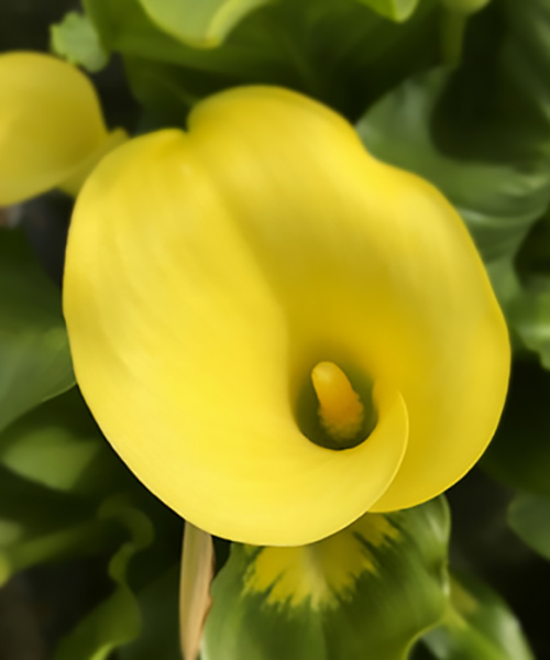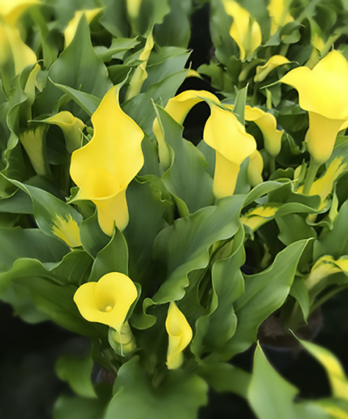Калла Corazon яркий цветок, который никого не может оставить равнодушным, ее изумительные бутоны чистейшего желтого цвета. Высота растения до 60 см. Бутоны изящные, бокаловидной формы, высотой до 10 см. Листья ланцетовидные, темно-зеленого цвета. Период цветения июль-сентябрь.