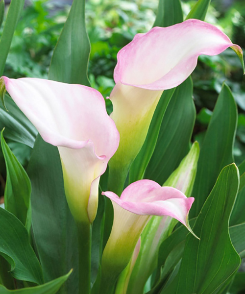 Калла Crystal Blush словно нежный глоток воздуха окутывает вас с первых мгновений, очаровывает оттенком лаванды, пленит неповторимой изящностью и утонченностью. Этому цветку отдают свое предпочтение не только любители, но и избалованные коллекционеры. Калла сорта Crystal Blush считается идеальной от корня до последнего лепестка. Форма бутона напоминает утонченный, вытянутый бокал с желтым стержнем по центру, а контраст и еще большую сочность цвету придают широкие, длинные, зеленые листья. Вы сможете украсить вашу клумбу, зону у фонтана или водоема этим прекрасным растением, а также формировать неповторимые букеты. Каллы можно выращивать как горшечную культуру, так и садовую. Для посадки каллы подойдет притененный участок. Идеальный вариант, место под негустыми кронами деревьев. Чтобы было достаточно светло, а солнечные лучи не обжигали листьев. Очень эффектно смотрятся каллы, рядом с искусственным водоемом. Отлично цветет и растет только в тепле, где температура не ниже 18°C, самая оптимальная температура 22-23°C. Не переносит сквозняков. На открытом воздухе это прекрасное растение цветет 1 месяц, а в закрытом помещении - 14 дней. Осенью растения сбрасывают листья. На зиму клубни каллы нужно выкопать и хранить в непромерзаемом помещении.