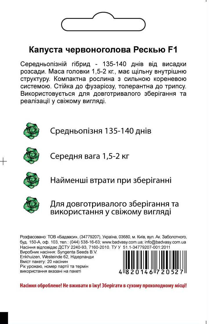Капуста красноголовая Ред Джевел F1, 20 нас, Агропакгрупп