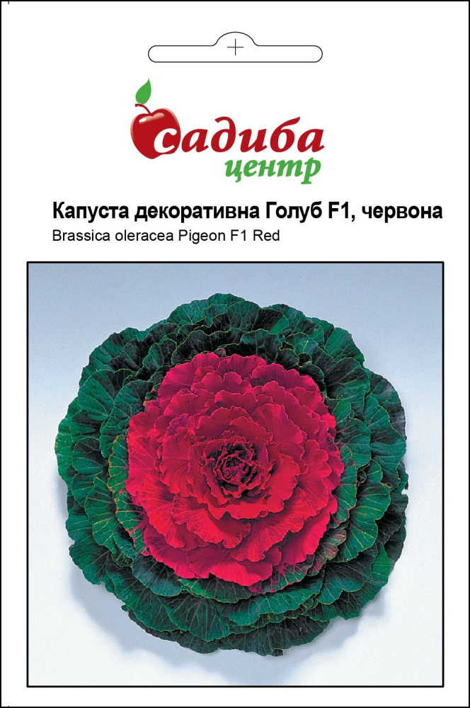 Капуста декоративная Голуб F1, красная - однолетняя культура высотой 25-35 см, диаметр розетки 30-35 см. Внешние листовые пластинки имеют насыщенно-зеленый цвет, а внутренние красный. Между листьями есть пространство, что делает декоративную культуру максимально похожей на цветы. На рассаду семена высевают в конце марта в начале апреля, в каждый горшок по 1-2 семени присыпав слоем почвы не более 1 см. Лучше использовать легкий, богатый на органические удобрения грунт. Рассаду накрывают стеклом или пленкой и увлажняют по мере подсыхания. При температуре 18-20 ° С всходы появляются через 3-5 дней. После этого нужно снизить температуру до 12-16 ° С чтобы молодые ростки НЕ вытянулись. Когда сформируется 2-3 настоящих листочка проводят пикировку в большие емкости. На постоянное место высаживают через 30-35 дней после всходов по схеме 30х45 см. Насыщенные цвета листья приобретают уже в конце августа, а после первых заморозков открывается вся красота культуры. Взрослые растения выдерживают температуру до -10 ° С и пересадки 2-3 раза за сезон. Также листья часто используют для украшения блюд.