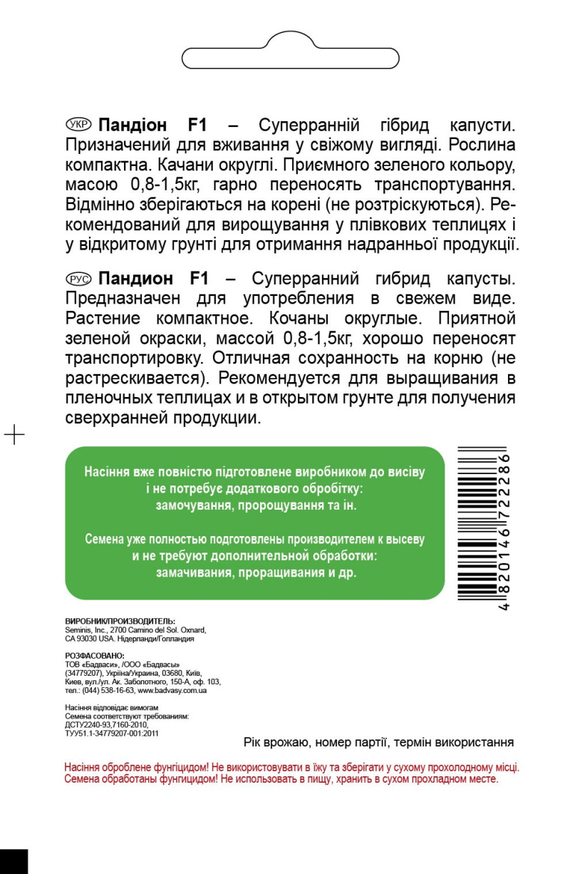 Капуста Пандион F1, 20 шт, Садыба Центр