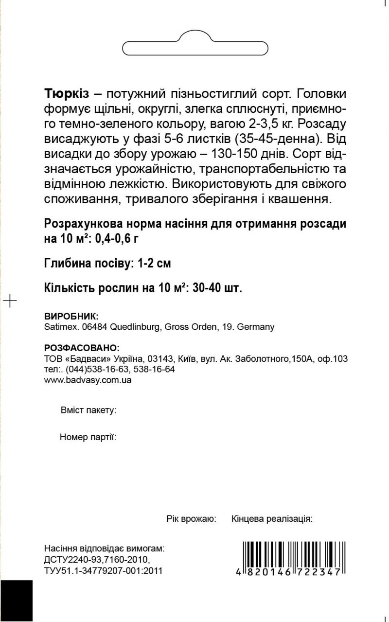 Капуста Тюркиз, 0,5 г, Традиция