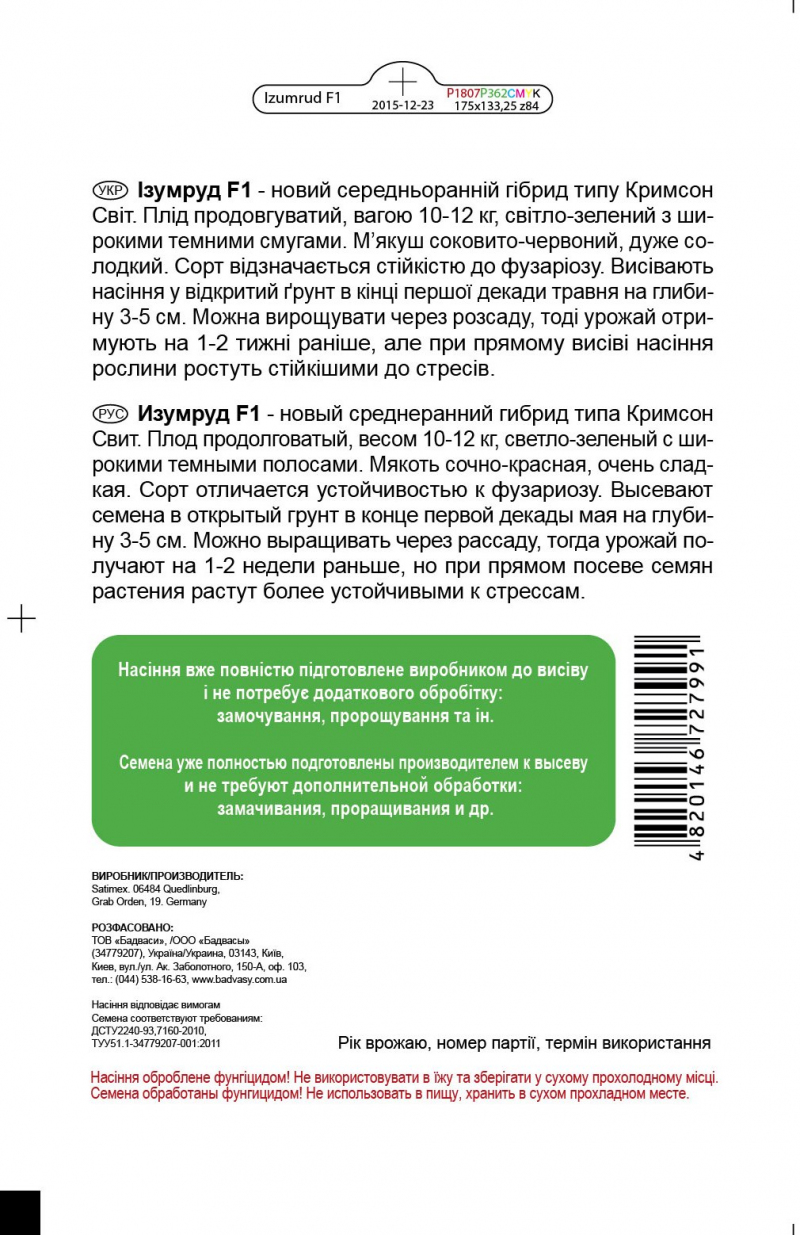 Арбуз Трофи F1, 5 нас. Садиба Центр