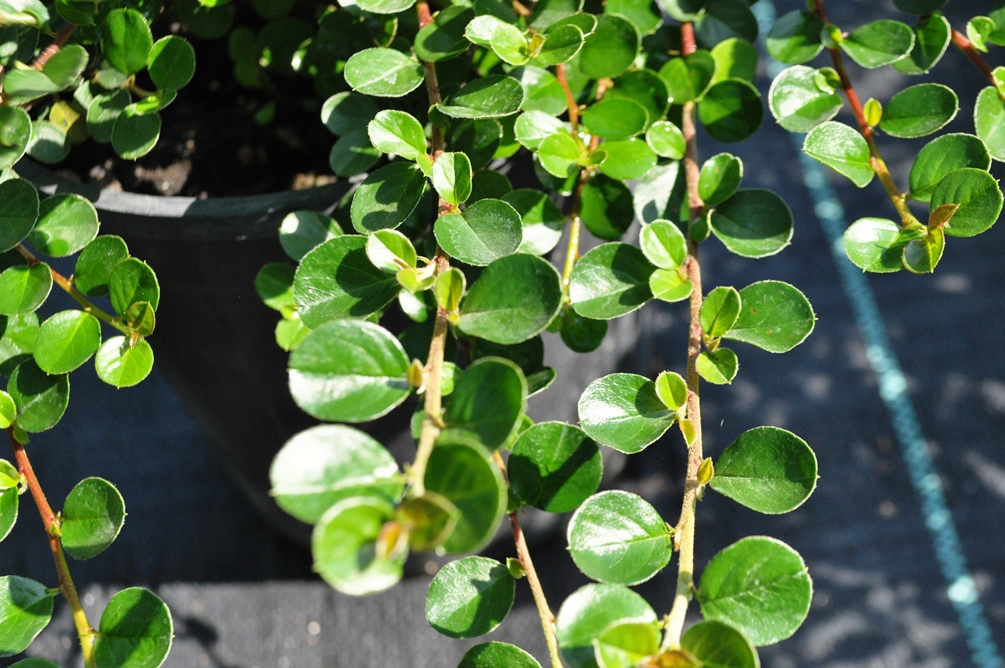 Кизильник горизонтальный РАЗМЕР: высотой до 0,7 метров, и шириной 1 метр, годовой прирост 10-15 см. Форма: кустарник, со стелющимися побегами. ЛИСТЬЯ: округлые, темно-зеленые, осенью красные. ЦВЕТЫ: маленькие розовые цветы в мае. МЕСТОПОЛОЖЕНИЕ: солнечные места в полутени, защищенное от ветра, утреннее солнце не должно попадать на кизильник. ОСОБЕННОСТИ: устойчив к городским условиям, морозоустойчив, переносит временную засуху и сырость. ИСПОЛЬЗУЕТСЯ: как солитер, групповые посадки, композиции в горшках.