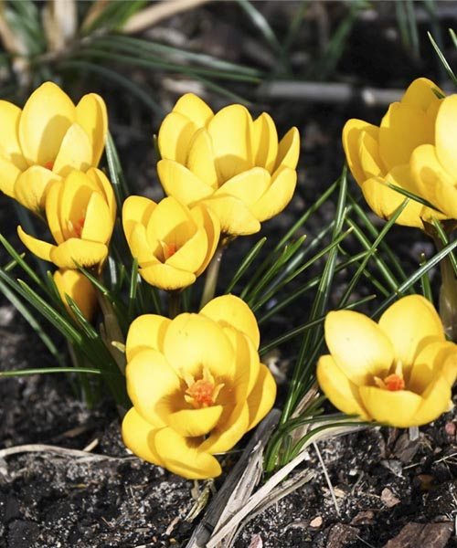 Садят крокус в начале осени, с сентября по ноябрь. Грунт для посадки готовят заранее – его рыхлят, затем вносят компост. Оптимальная глубина посадки – 5 см, а расстояние между луковицами – от 3 до 10 см. После того как разместили луковицы в лунках, засыпьте их землёй и обильно полейте. Также не лишним будет замульчировать место посадки сухой травой и листьями.