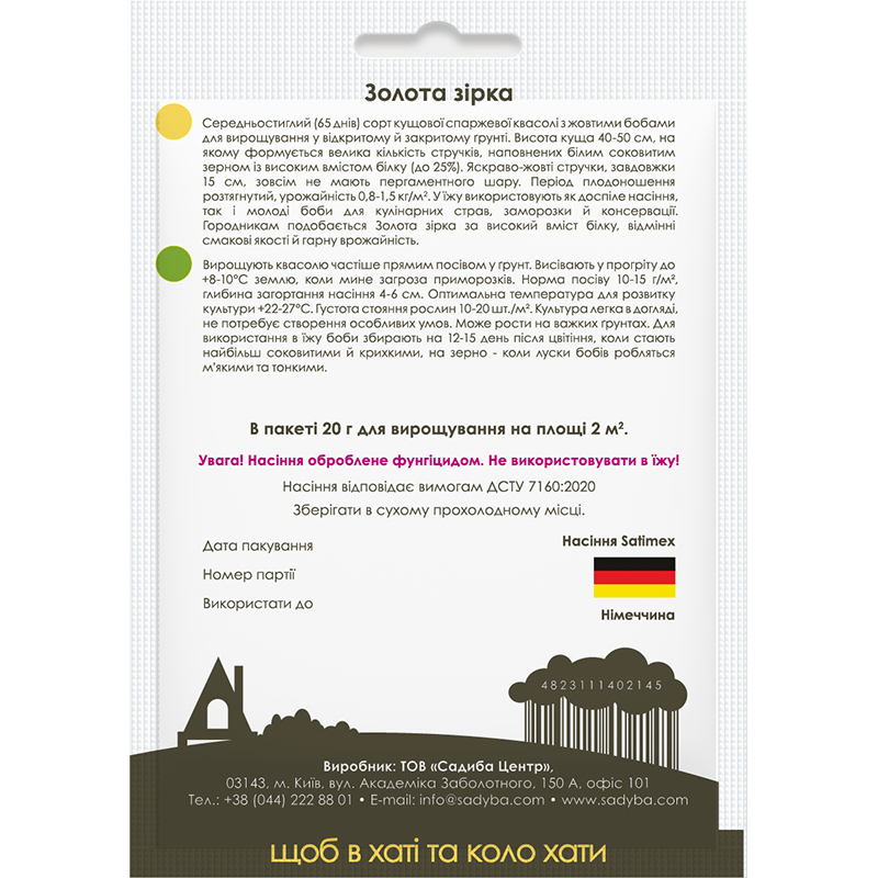 Сильный раннеспелый сорт кустовой спаржевой фасоли. Растение высотой до 50 см, с золотистыми бобами длиной 13-15 см. Семена крупные, снежно-белого цвета, с отличным вкусом. Сорт отличается устойчивостью к антракнозу и вируса фасолевой мозаики. Высевают с конца апреля до третьей декады июня на глубину 3 см. Подходит для использования в домашней кулинарии, консервирования и замораживания.