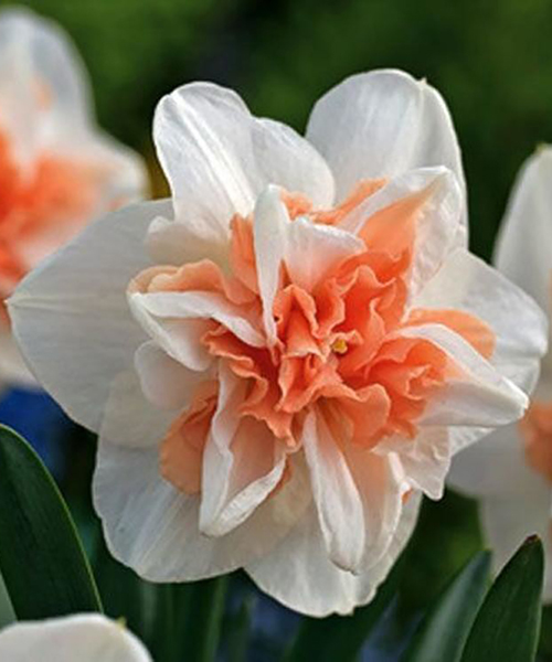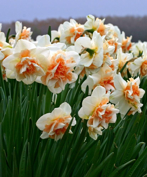 Нарцисс Delnashaugh покоряют с первого взгляда своим оригинальным бело-абрикосовым окрасом и пышным бутоном, который окружает зеленая листва. Цветы считаются довольно неприхотливыми в уходе, они хорошо растут на одном месте до 5 лет и с приходом устойчивого тепла радуют своей красотой. Высота растения до 45 см. Период цветения апрель-май. Бутон пышный, махровый, в диаметре до 15 см. Округлые лепестки расположены в несколько рядов, белый цвет чередуется с нежным абрикосовым. Посадку производят с августа по октябрь. Весной посадка тоже разрешена, как только грунт оттает на глубину 20 см. Глубина посадки 10 см, а расстояние между луковицами 10 см. Участок выбирают солнечный, допустима небольшая полутень, без ветра. Нарциссам необходим умеренный полив и подкормка минеральными, фосфорными, калийными составами. Луковицы могут зимовать в грунте под слоем мульчи.