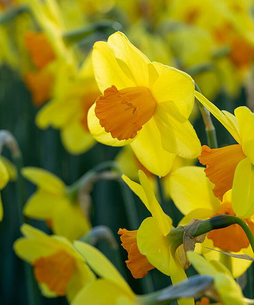 Нарцисс Эстремадура (Estremadura) – это утонченный и яркий сорт, который способен стать настоящим украшением вашего весеннего сада. Его двухцветные цветы с желтыми лепестками и оранжевой трубочкой привлекают внимание и создают отличный контраст. Цветы имеют диаметр около 5 см, что делает их идеальными для букетов и флористических композиций. Подходит для создания весенних клумб, бордюров и цветников, где будет эффектно выглядеть как самостоятельно, так и в сочетании с другими весенними цветами. Высота взрослого растения колеблется от 35 до 50 см. Они цветут в апреле, добавляя яркие краски и весеннее настроение вашему саду. Зеленые листья обеспечивают гармоничный фон для ярких цветов. Цветок двухцветный с ярко-желтыми лепестками с насыщенной оранжевой коронкой.