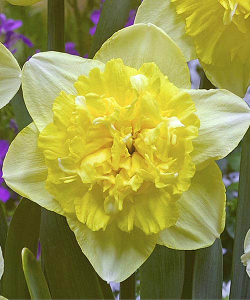 Нарцисс Фул Хауз (Full House) – это необыкновенно привлекательный махровый сорт, который очаровывает своими цветами. Его лепестки собраны в пышные соцветия, сочетающие ярко-желтые и нежно-белые оттенки, создавая эффект многослойности. Цветок большого размера (10-12 см), имеет приятный аромат и достигает высоты около 35-40 см и до 10-20 см в ширину. Листья сине-зелёного цвета. Каждый цветоносный стебель образует по 3 или 4 эффектных цветка.