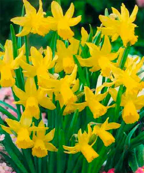 Нарцисс Tete a Tete (Тет-а-Тет) - миниатюрный сорт. Околоцветники и корона имеют одинаковый желтый цвет, лепестки околоцветника более острые и вытянутые, чем у других миниатюрных нарциссов. Диаметр цветка 5-6 см, высота цветоноса до 15 см. Цветет с апреля по май. Глубина посадки должна в 2 раза превышать высоту луковицы нарцисса. Расстояние между луковицами при посадке - от 5 до 15 см в зависимости от размера луковицы. Для цветения нарциссов в январе, луковицы высаживают в августе.
