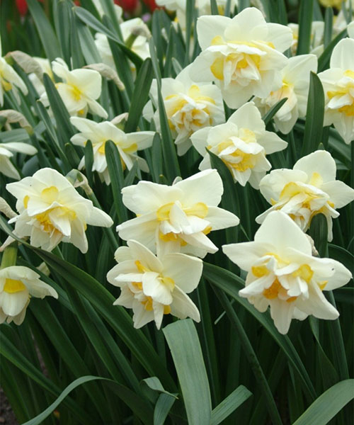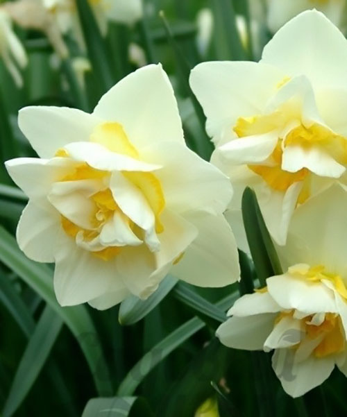 Нарцисс White Lion (Уайт Лайон) - Цветет в апреле-мае, в течение 9-18 дней. Цветки крупные, лепестки которых окрашены в ярко-желтый цвет, а кружевная корона белая. Изгибы лепестков напоминают завитки львиной гривы. Этот нарцисс отличается высокой степенью устойчивости к болезням. Глубина посадки должна в 2 раза превышать высоту луковицы нарцисса. Расстояние между луковицами при посадке - от 5 до 15 см в зависимости от размера луковицы. Для цветения нарциссов в январе, луковицы высаживают в августе.