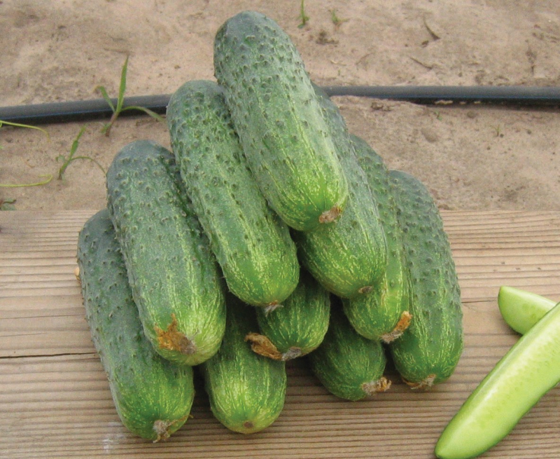 Ранний насекомо опыляемый гибрид огурца с высокой стабильной урожайностью. Мощное открытое растение, формирует несколько зеленцов в одном узле. Плоды однородные, темно-зеленые, белошипые, длиной 6—12 см, с отличными вкусовыми и засолочными качествами, генетически без горечи. Отличный гибрид для выращивания на пикуль. Устойчив к заболеваниям.