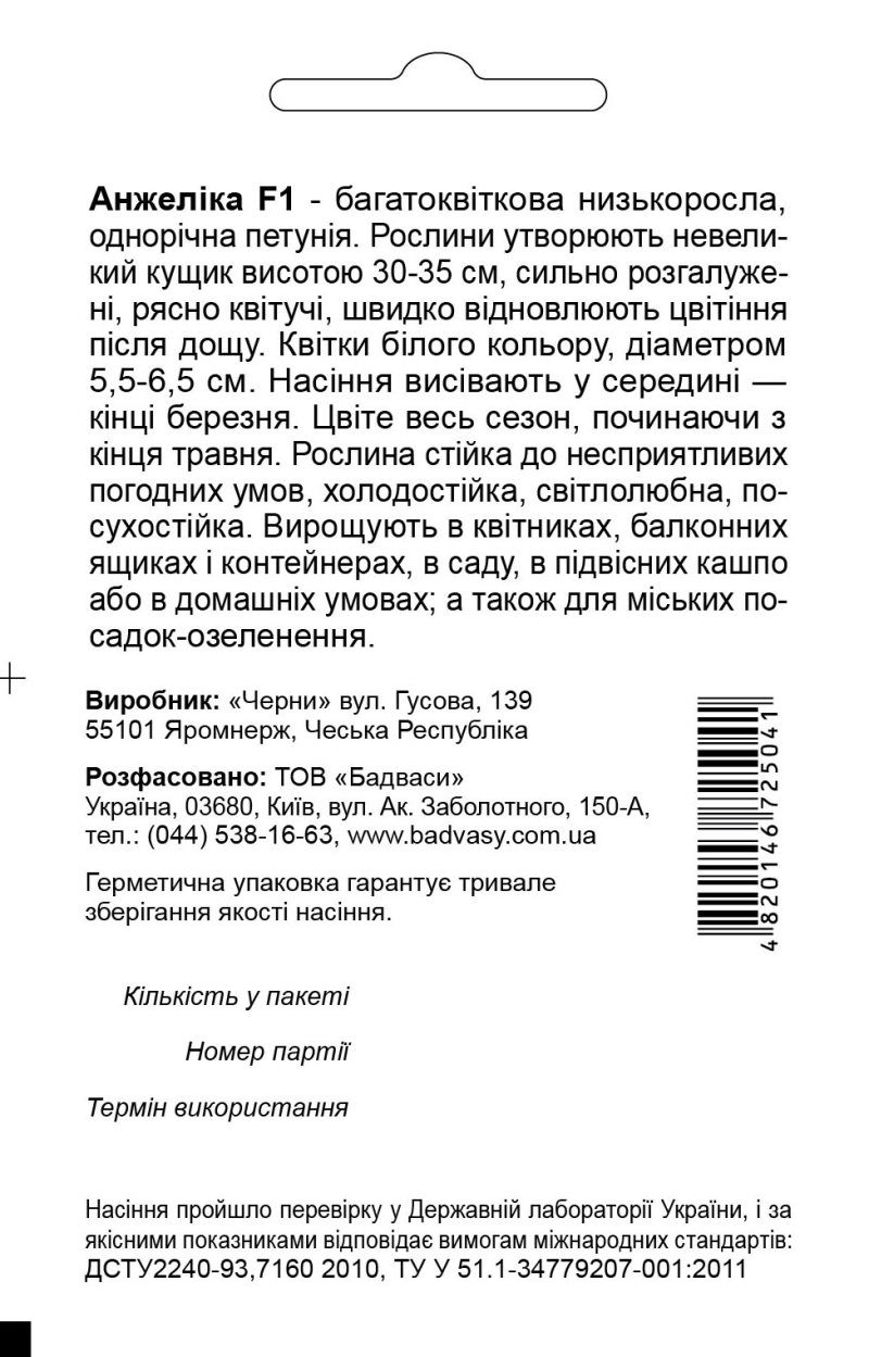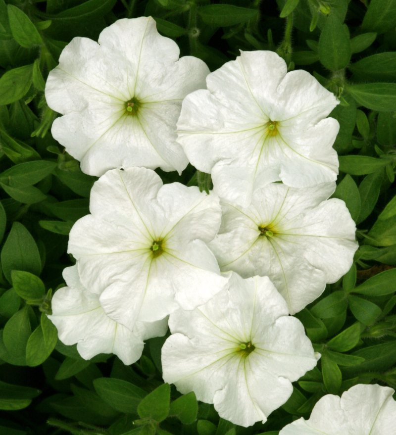 Петуния Анжелика F1 - многоцветковая низкорослая петуния. Растение образует небольшой кустик высотой 30-35 см, разветвленный, обильно цветущий, быстро восстанавливает цветения после дождя. Цветки белого цвета, диаметром 5,5-6,5 см. Семена высевают в середине - конце марта. Цветет весь сезон, начиная с конца мая. Растение устойчиво к неблагоприятным погодным условиям, холодостойкое, светолюбивое, засухоустойчива. Выращивают в цветниках (клумбы, рабатки), балконных ящиках и контейнерах, в саду, в подвесных кашпо или в домашних условиях; а также для городских посадок-озеленения.