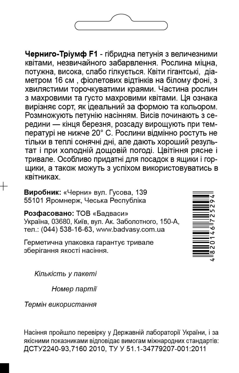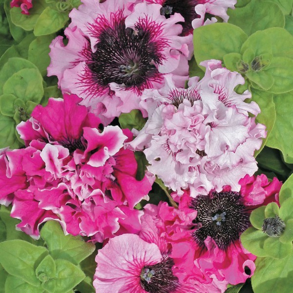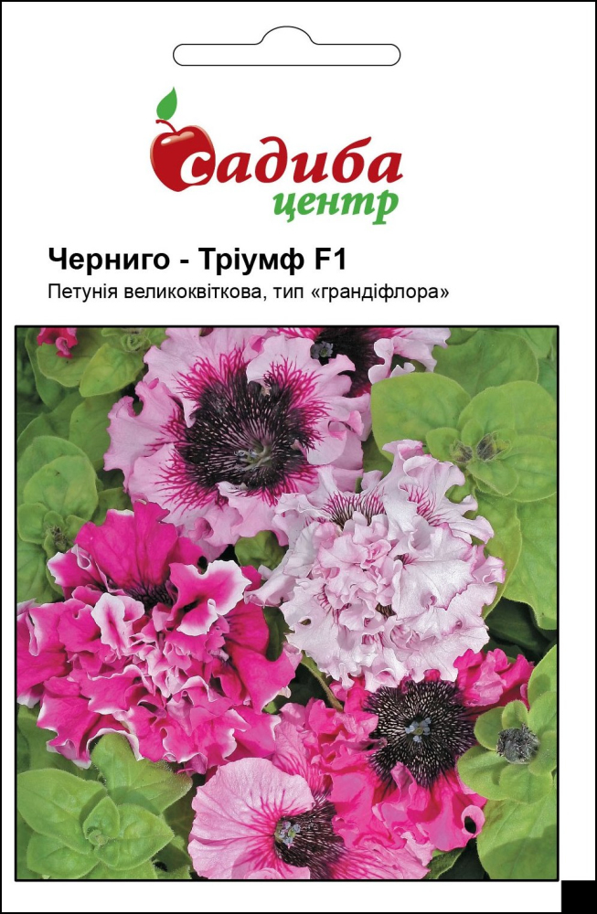 Петуния Черниго Триумф F1 - гибридная петуния с огромными цветами, необычной расцветки. Растение крепкое, мощное, высокое, слабо ветвится. Цветы гигантские, диаметром 16 см, фиолетовых оттенков на белом фоне, с волнистыми бахромчатыми краями. Часть растений с махровыми и густо махровыми цветами. Этот признак отличает сорт, как идеальный по форме и цвету. Размножают петунию семенами с помощью рассады. Висев начинают с середины - конца марта, рассаду выращивают при температуре не ниже 20°С. Растения отлично растут не только в теплые солнечные дни, но дают хороший результат и при холодной дождливой погоде. Цветение обильное и продолжительное. Особенно пригодны для посадок в ящики и горшки, а также могут с успехом использоваться в цветниках.