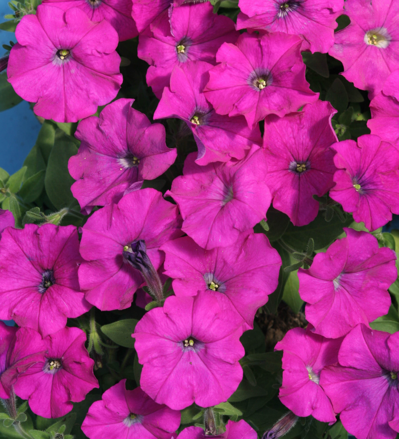 Петуния Карлик F1 - однолетнее растение, формирует ветвистый и компактный кустик высотой 20 см. Зацветает рано и обильно покрывается «мини» цветками фиолетового цвета (4-5 см). Выращивают рассадным способом. Посев проводят в конце февраля-марте. Семена равномерно рассыпают по поверхности увлажненной земли, сбрызгивают водой из распылителя и накрывают стеклом или прозрачной пленкой. Всходы появляются через 10-15 дней при t 22-24 ° С. Пикировку проводят в фазе двух настоящих листьев. Рассаду высаживают, когда минует угроза заморозков. Цветение с июня и до заморозков. Особенно пригодны для посадок в ящики и горшки, а также могут с успехом использоваться в цветниках.