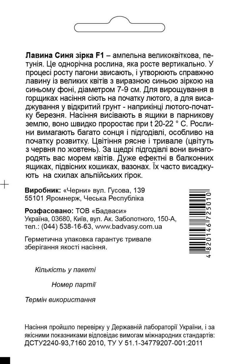 Петуния Лавина F1, синяя звезда - ампельная крупноцветочная петуния. Это однолетнее растение, которое растет вертикально. В процессе роста побеги свисают, и образуют настоящую лавину из крупных цветов с выразительной синей звездой на синем фоне, диаметром 7-9 см. Для выращивания в горшках семена сеют в начале февраля, а для высадки в открытый грунт - в конце февраля-начале марта. Семена высевают в ящики в парниковой земли, быстро прорастают при t 20-22°С. Растения требуют много солнца и подкормки, особенно в начале развития. Цветение обильное и длительное (цветут с июня по октябрь). За щедрые подкормки они вознаградят вас морем цветов. Очень эффектны в балконных ящиках, подвесных корзинах, вазонах. Их часто высаживают на склонах альпийских горок.