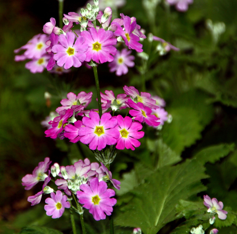 Примула Малакоидес, лососевая - примула. Двухлетнее растение высотой до 30 см. Цветки лососевого цвета в форме звезды. Цветонос высотой до 40 см с кольчатым соцветием. Если цветонос срезать сразу после отцветания, цветения примулы можно продлить до 2-3 месяцев Размножают семенами, сеют в ноябре - декабре, но сеять можно круглый год. Чтобы получить хорошую всхожесть семян надо поддерживать высокую влажность воздуха и температуру 16-20 ° С. Всходы появляются через 10-12 дней, затем температуру и влажность воздуха постепенно снижают. Пикируют сеянцы дважды, в марте-апреле высаживают в горшки. Цветет с ноября по май. Зимой оптимальная температура 5-6 ° С Светолюбивое, влаголюбивое растение, но прямых солнечных лучей не переносит.