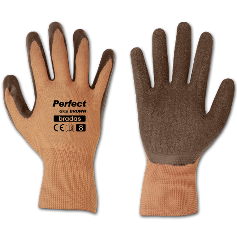 Перчатки защитные PERFECT GRIP BROWN - тонкие бесшовные перчатки с латексным покрытием изготовлены из полиэстера, плотность трикотажа - GAUGE 13.