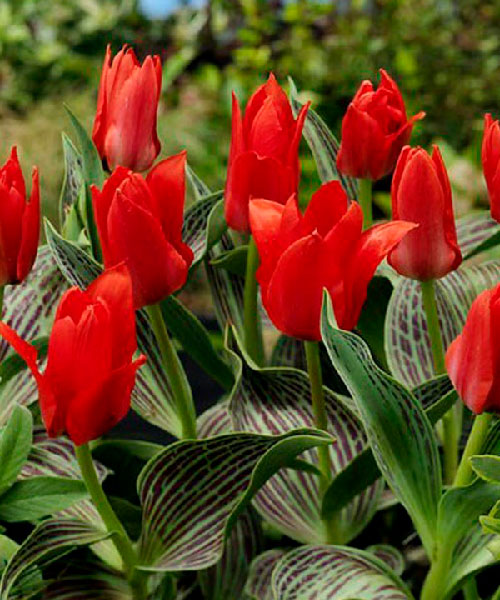 Тюльпан Ali Baba (Али Баба) – среднеранний сорт тюльпана. Бутон имеет огненно-красный оттенок с вывернутыми наружу лепестками. Особенностью этого сорта являются листья с сизой полоской. Высота бутона до 9 см, высота 35 см, цветут в апреле-мае.