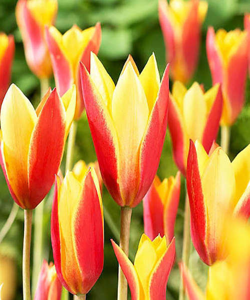 Тюльпан Clusiana var Chrysantha – ботанический сорт, который считается долгожителем среди тюльпанов. Он привлекателен тем, что хорошо разрастается и цветет из года в год. В солнечные дни цветки полностью раскрываются, а в пасмурную погоду они эффектно смотрятся в закрытом виде – с яркими полосами на внешней стороне лепестков.