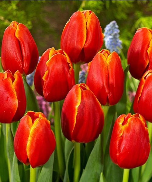 Тюльпаны Verandi имеют бархатные, красные лепестки. Цвет насыщенный, обладает привлекательным градиентом. Украшает лепестки сочная, желтая кайма. Сочетание красного и насыщенно-желтого оттенков придает цветам выразительность и фееричность. Высота растения достигает 55 см. Длина стеблей 45-50 см, а диаметр цветка 5-10 см. Бутоны бокаловидной формы, растут на крепких, зелёных стеблях. Листья у сорта достаточно крупные, ланцетные.