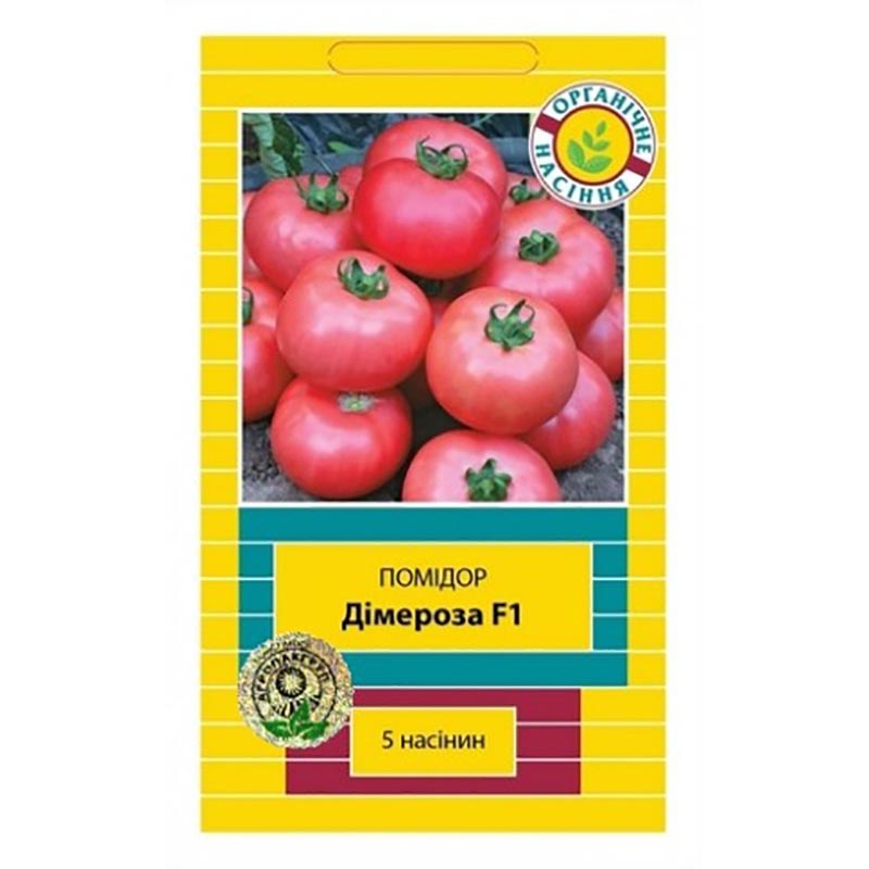 Томат Димероза – ранний высокопроизводительный гибрид. Вегетационный период растений составляет 60-65 суток после высадки рассады на постоянное место произрастания. Растение высокорослое, мощное с хорошо развитой корневой системой, отличающееся короткими междоузлиями. Плоды плоско-округлой формы, без ребер, массой 200-220 г. устойчивы к растрескиванию. Имеют привлекательную розовую окраску, блестящие, плотные, транспортабельные с высокими вкусовыми качествами. Гибрид Димероза предназначен для культивирования в закрытой почве, характеризующейся способностью закладывать кисти в течение всего периода плодоношения. Устойчив к характерным болезням томатов (вирус мозаики томатов, кладоспориоз, вертициллезное и фузариозное увядание, серая пятнистость листьев). ! Семена органические, выращенные без генетически модифицированных организмов, синтетически химизированных удобрений и пестицидов, только с применением биологических удобрений.