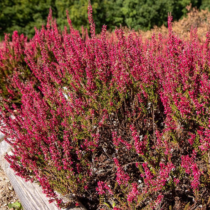 Вереск Nora (Нора) – очень красивый декоративный куст. Относится к серии бутонных сортов, бутоны которых не распускаются, в результате чего они не отцветают и сохраняют окраску до морозов и последующих оттепелей. Нора считается среднерослым сортом вереска, достигающим примерно 30-40 сантиметров в высоту и 40-50 сантиметров в ширину. Растение формирует компактную крону, побеги устремлены вверх. Листья чешуевидные, трехгранные, сидячие, очень толстые, маленькие, ярко-желто-зеленого цвета, плотно прижимаются к веточкам. Начиная с конца сентября-начала октября, вереск Нора обильно цветет. Цветочные бутоны окрашены в ярко-рубиновый цвет с более светлым беловатым основанием, они мелкие, достигают 4 сантиметра в длину и около 1 миллиметра в диаметре, многочисленные, собранные в плотные соцветия, образуются на коротких цветоножках. Для обильного цветения вереск Нора нуждается в весенней обрезке (конец марта и начало апреля). Растение переносит зимние холода до -26°С, поэтому на зиму нужно укрывать торфом (или сухими листьями) и лапником. Хорошо переносит периоды летнего зноя и засухи. Городские условия растение тоже переносит хорошо. Требует солнечного света и кислых почв, слегка влажных и богатых перегноем. Выбирайте такое место в саду, которое будет освещаться солнцем целый день или половину дня. Сорт подходит для выращивания в горшках на балконе.