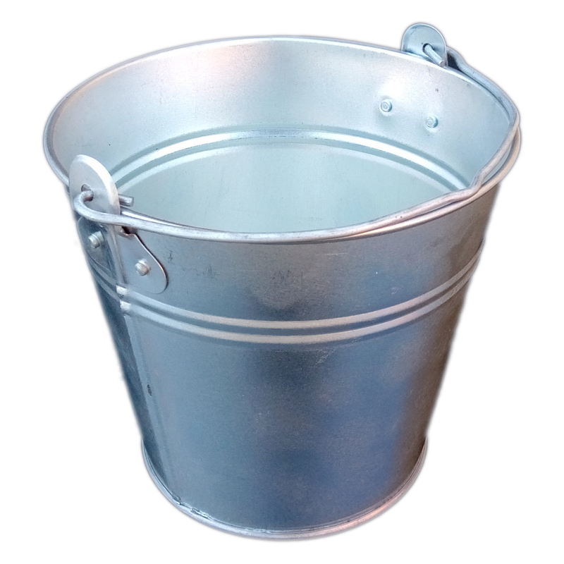 Ведро одношовное, сделанное из цельного листа оцинкованной стали. Имеет 2 ребра жесткости, штампованные ушки под ручку посаженые на заклёпки. Сама ручка изготовлена из оцинкованной проволоки.