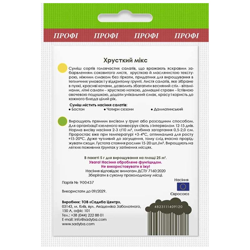 Суміш містить насіння салатів: