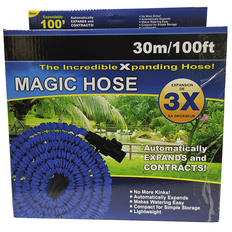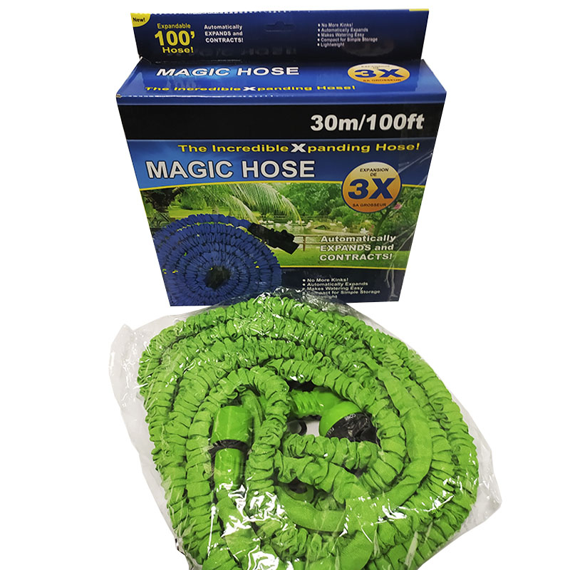 Шланг для поливу, що розтягується, збільшується в 3 рази в довжину, як тільки ви включаєте воду, і повертається до звичайних розмірів при її відключенні. Він складається з двох «шарів». Всередині знаходиться латексна трубка, яка має здатність добре розтягуватися. Під тиском води трубка розширюється і подовжується до розмірів зовнішнього кожуха з щільного поліестеру. Шланг не переломлюється і не перекручується. На обох кінцях шланг оснащений конекторами для підключення сполучної і поливальної арматури.