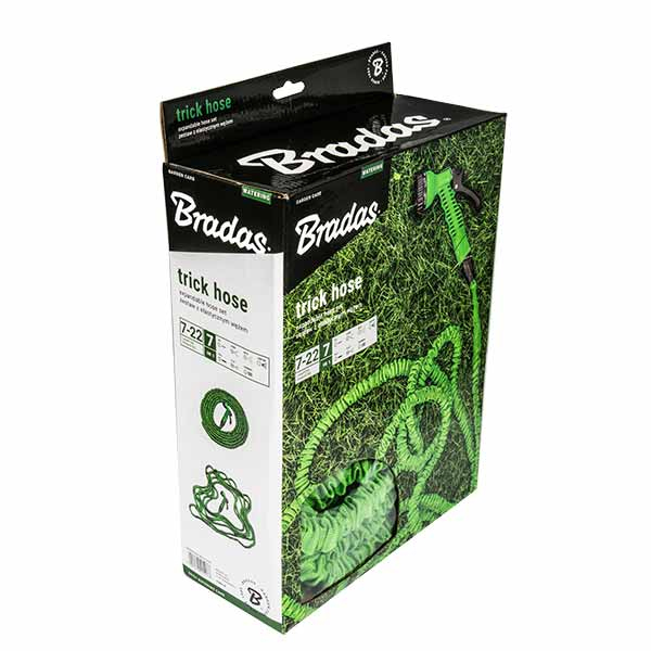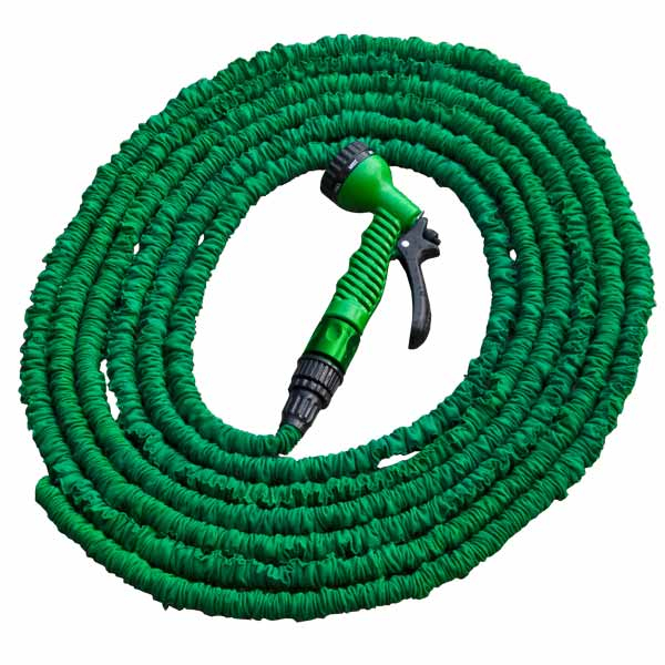 Шланг, що розтягується TRICK HOSE 5-15 м, зелений, легкий і компактний. Збільшується в 3 рази в довжину, як тільки ви включаєте воду, і повертається до звичайних розмірів при її відключенні. Шланг TRICK HOSE складається з двох «шарів». Всередині знаходиться латексна трубка, яка має здатність добре розтягуватися. Під тиском води трубка розширюється і подовжується до розмірів зовнішнього кожуха з щільного поліестеру. Шланг не переломлюється і не перекручується. На обох кінцях шланг оснащений конекторами для підключення сполучної і поливальної арматури. Також в комплект входить адаптер з внутрішнім різьбленням 1 "- редукція до 3/4" і 7-функціональним поливальним пістолетом. Шланг TRICK HOSE оптимально підійде для поливу рослин навколо будинку і на невеликих за площею ділянках, миття фасаду будинку, вікон, огорожі, доріжок.