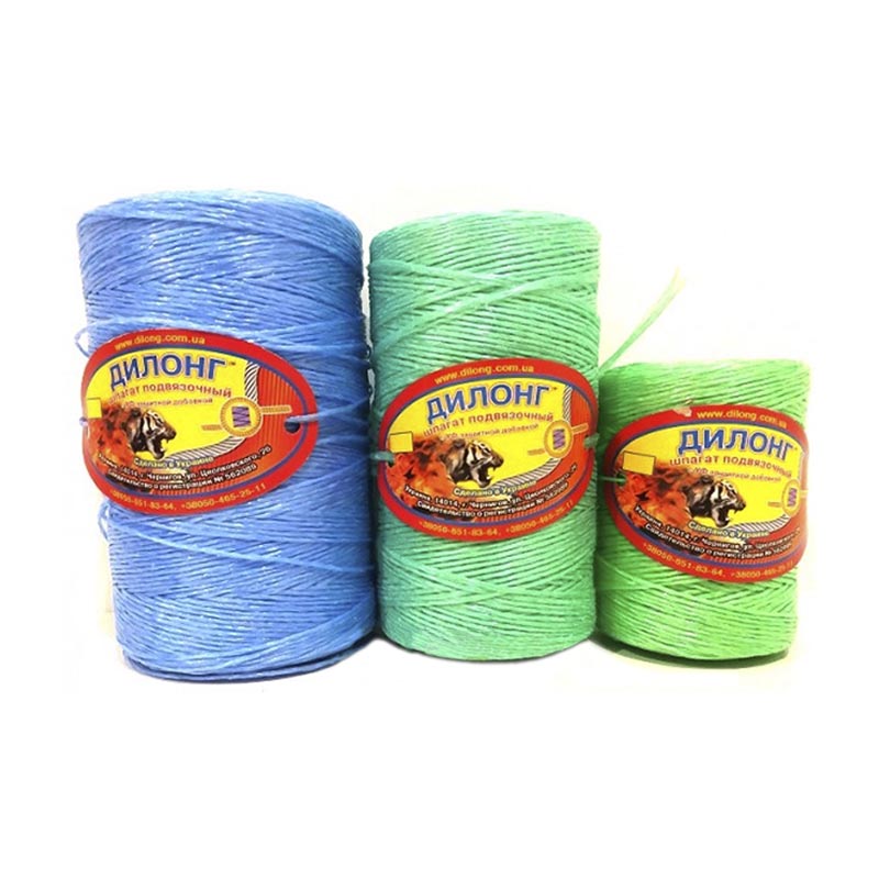 Шпагат підв'язувальний поліпропіленовий Ділонг застосовується в багатьох галузях народного господарства, агропромисловості як універсальний підв'язувальний, в'язальний, пакувальний матеріал. Сучасні технології дозволили забезпечити всі властивості, необхідні для широкого та практичного використання поліпропіленового шпагату: стійкість до екстремальних кліматичних умов, дії хімречовин, зносостійкість, світлостійкість, міцність, рівномірність товщини та міцності по всій довжині шпагату.