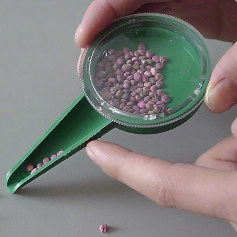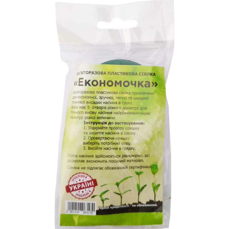 Багатоваразова пластикова сівалка призначена для ручної посадки насіння, економною, зручною, легкою та швидкою точковою посадкою насіння в грунт при виконанні посівних робіт. Дозволяє відсівати негідне насіння. Вона має 5 отворів різного діаметра для точного висіву насіння найрізноманітніших культур різного розміру.