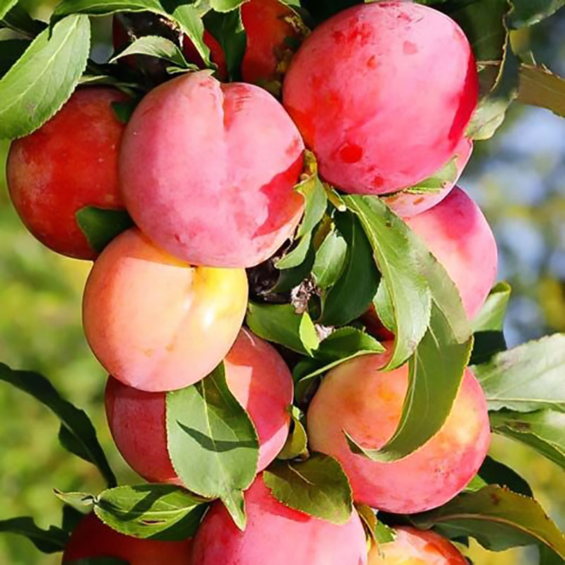 Слива-абрикос колоновидна Шедевр - напівкарликовий гібрид, який за термінами дозрівання належить до середніх. Висота деревця не перевищує 2 м. У нього вузькоциліндрична крона. На ній в серпні дозріває близько сотні фруктів. Плоди великі, соковиті і м'ясисті, можуть досягати 80 грам. За зовнішнім виглядом вони схожі на рожево-жовті сливи, але мають легкий абрикосовий аромат.