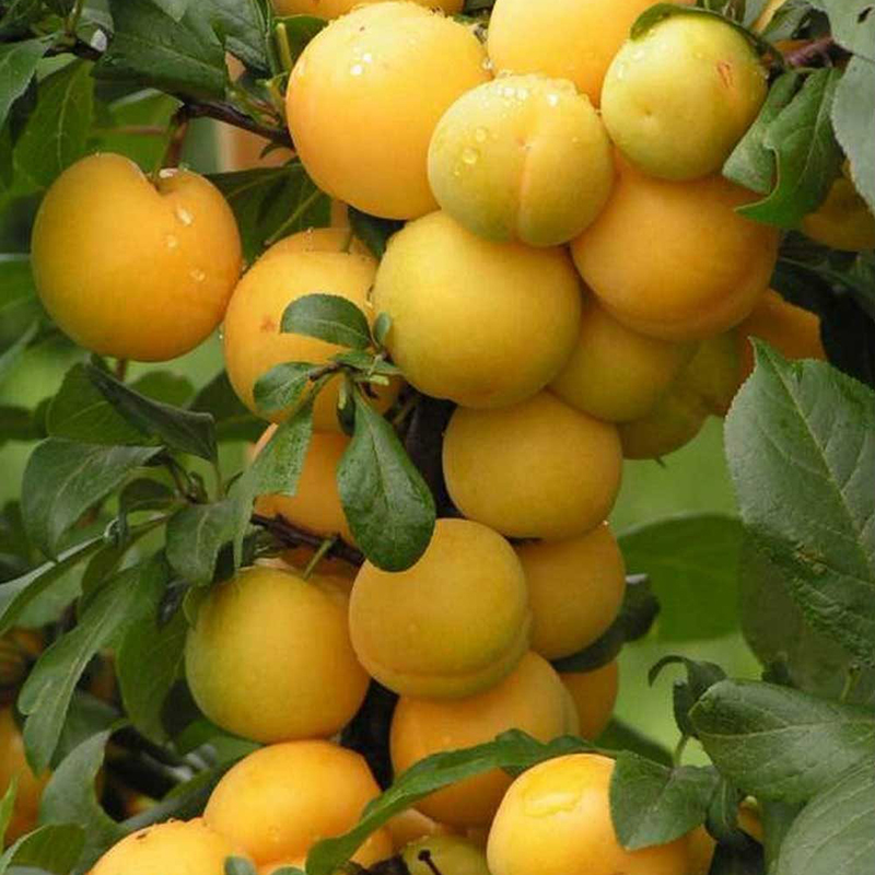 Слива колоновидна Мірабелла чудовий сорт. Деревце заввишки не більше двох метрів з вузькою кроною вступає в плодоношення дуже швидко - на другий рік. Урожай слив рясний - з дорослого дерева починаючи з серпня можна зібрати кілька десятків кілограм смачних жовтих слив. Вони великі (50 грам), солодкі з медовим смаком. Кісточка не крупніше, вільна. Гідність сорту - самоплідність, низька обсипальність врожаю, сливи залишаються на дереві довгий час. Сорт стійкий до погодних факторів і хвороб. Ця слива добре підходить для маленьких ділянок, на яких немає можливості посадити великі сливові дерева.