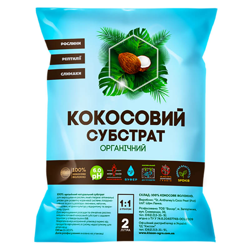 Кокосовий субстрат – це органічний натуральний продукт, який сприяє розвитку та росту розсади овочевих, квіткових, плодових, ягідних культур у відкритому і закритому ґрунті. Структура такого субстрату складається зі мікроскопічних губчастих волокон кокосового горіха. Завдяки його капілярній системі відбувається рівномірний розподіл і утримання вологи, а висока пористість волокна покращує доступ кисню по всій його поверхні. Дані переваги кокосового волокна сприятливо відображаються на розвитку кореневої системи і надземної частини рослин.