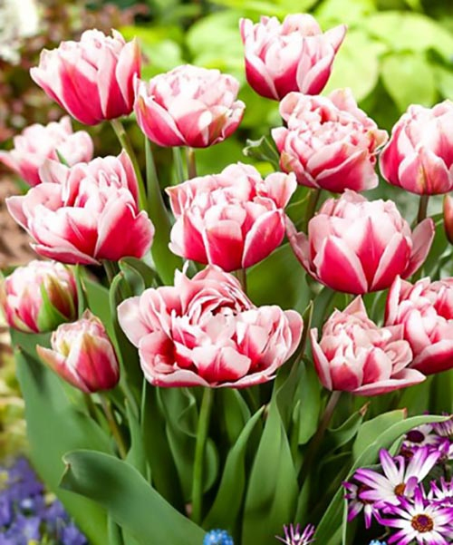 Тюльпан Chandelier з англійської назва цього сорту перекладається як «Люстра», який захоплює своїми яскравими махровими квітами, діаметром до 10 см. Вони червоно-білі з безліччю пелюсток відрізняються особливою витонченістю. Цвітуть пізньою весною. Висота рослини 35-40 см, підходить для зрізання. Цей сорт чудовий в групових посадках і композиціях - так ви зможете обіграти махрову форму квіток і красиві червоно-білі відтінки, щоб влаштувати весняне шоу в своєму квітнику. Цибулини також можна посадити в горщики і контейнери.