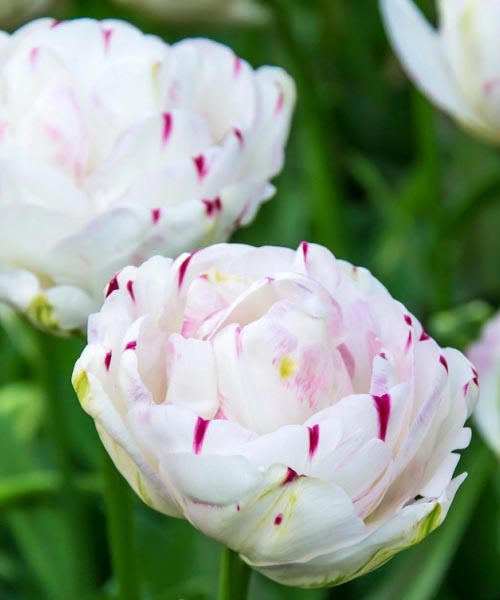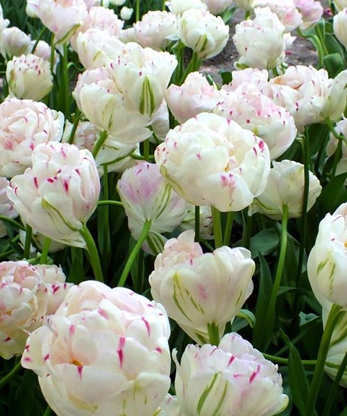 Махровий пізній сорт досягає 40 см у висоту. Листя високі, широкі, темно-зеленого кольору. Бутон молочно-білий з малиновими штрихами по краях не вигоряє на сонці, довго зберігає напіврозкриту форму, зберігаючи свою декоративність. Висота бутона - 6 см, діаметр квітки, що розпустилася - 9-11 см. Пишне цвітіння починається в травні і триває 2-3 тижні. Квітки ароматні.