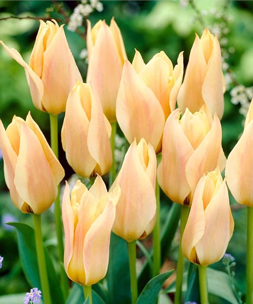 Тюльпан Fur Elise (Фюр Еліс) - середньоранній сорт тюльпана. Бутон має дуже ніжне забарвлення: блідо персикові пелюстки з акварельними мазками ніжно рожевого кольору. Висота бутона до 3-5 см, висота 15-20 см, цвітуть в квітні-травні.