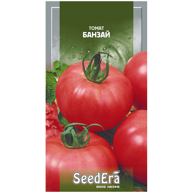 Томат Банзай - це сорт у якого вегетаційний період від сходів до плодоношення - 100-105 днів, середньорослий до 1,0 м, рекомендований для плівкових теплиць і відкритого грунту. Посів на розсаду в кінці березня – початку квітня. Висадка розсади в теплиці на початку-середині травня у віці 40-45 днів. Плоди плоско-округлої форми, масою 160 г, рожеві, ніжні і дуже смачні і запашні. Прекрасно підходять для приготування салатів. Сорт стійкий до збудників вірусу тютюнової мозаїки, кладоспоріозу, фузаріозу. Вимогливий до вологості грунту, потребує регулярного поливу.