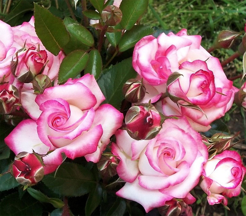 Троянда Плетиста Хендель - сорт з виразними квітками. Квітки напівмахрові, келихоподібні, кремові з густо-рожевими краями.