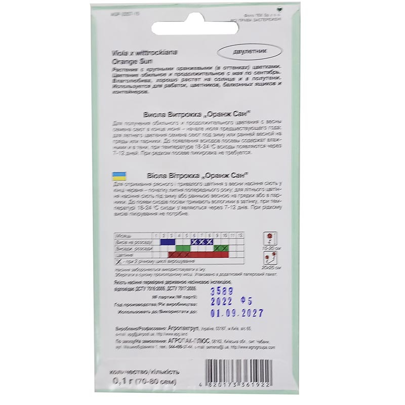Віола Вітрокка Оранж Сан, 0.1 г, Агропакгруп