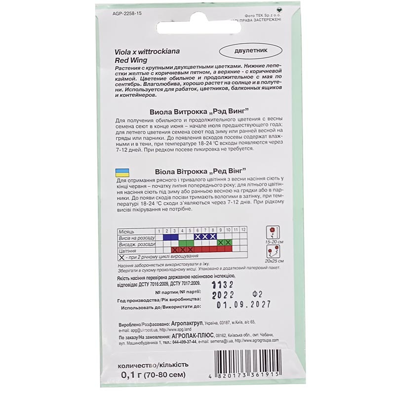 Віола Вітрокка Ред Вінг, 0.1 г, Агропакгруп
