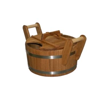 Дубовий запарник - прекрасний виріб для запарювання банних віників, а також розведення ароматичних масел і настоянок з цілющих трав. Виділяється особливий цілющий аромат, з його використанням приміщення лазні і сауни просто пахне! Незамінний аксесуар для господарів і любителів лазні і сауни! Порадує всіх, хто цінує екологічно чисті натуральні вироби. Вдало прикрашає інтер'єр, служить довго і надійно!