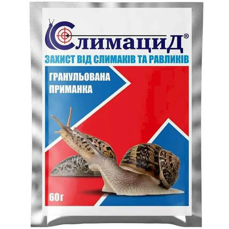 Слимацид® застосовується для запобігання появи та знищення слимаків на різних сільськогосподарських культурах, присадибних ділянках, льохах та підвалах. Препарат розроблений у гранулах, які стійкі до дощу та не розмокають у воді при першій експлуатації, що дозволяє їм бути ефективними впродовж тривалого періоду. Діюча речовина: метальдегід 65 г/кг, призводить до зневоднення молюсків, не викликаючи звикання у шкідників.